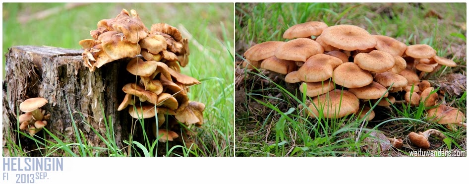 稍稍停留後我跟傻豬T隨即趕往市集Hakaniemi跟芬蘭友人S會合(延伸閱讀:芬蘭 ✈ 赫爾辛基市集尋訪 Hietalahti & Hakaniemi Market Halls)路上經過公園,公園裡居然有好多野生磨菇!遍地都是!感覺下一秒就會看到小鹿斑比了好夢幻啊 XD